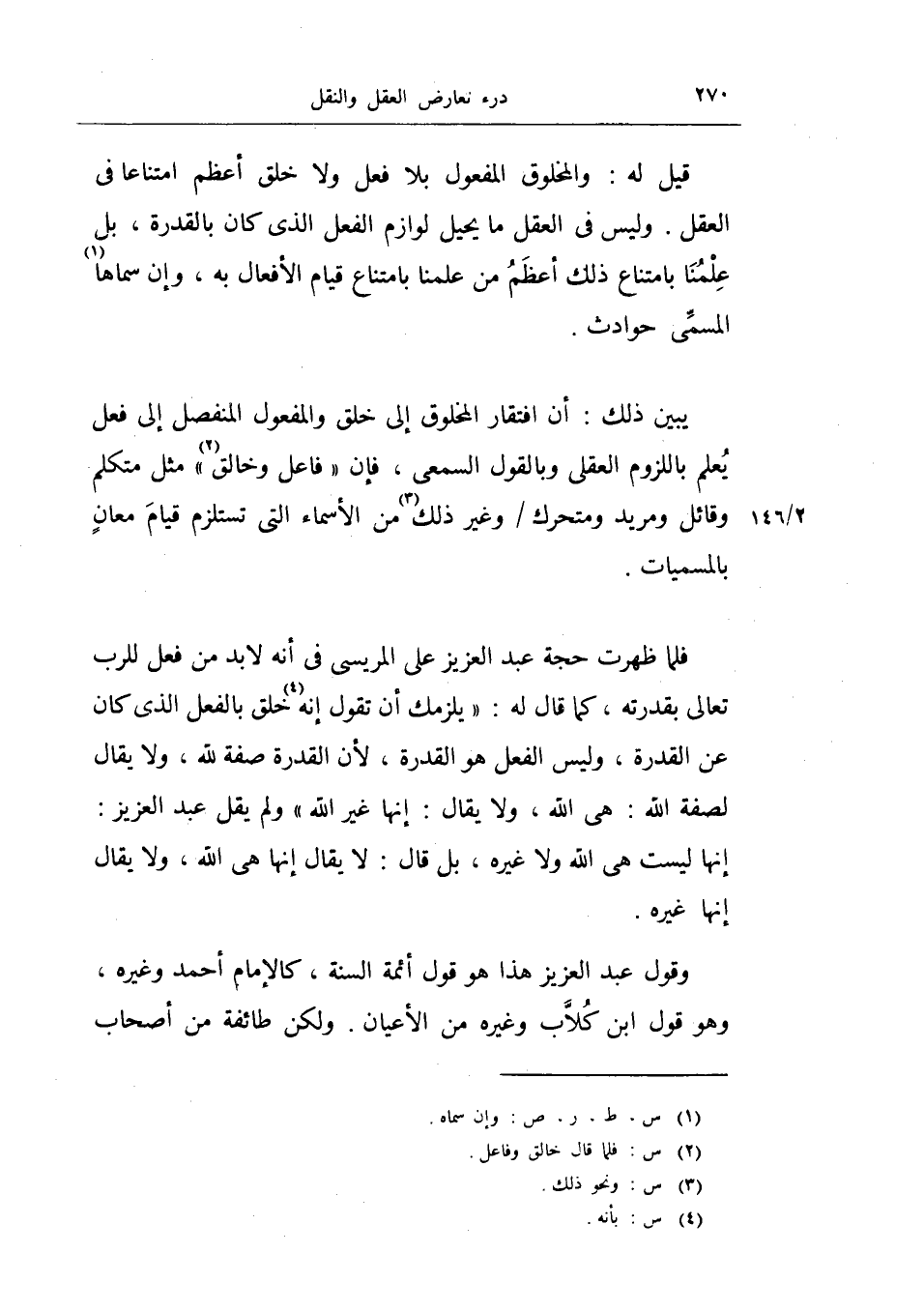 وليس في العقل ما يحيل لوازم الفعل الذي كان بالقدرة، بل علمنا بامتناع ذلك أعظم من علمنا بامتناع قيام الأفعال به، وإن سماها المسمي حوادث.