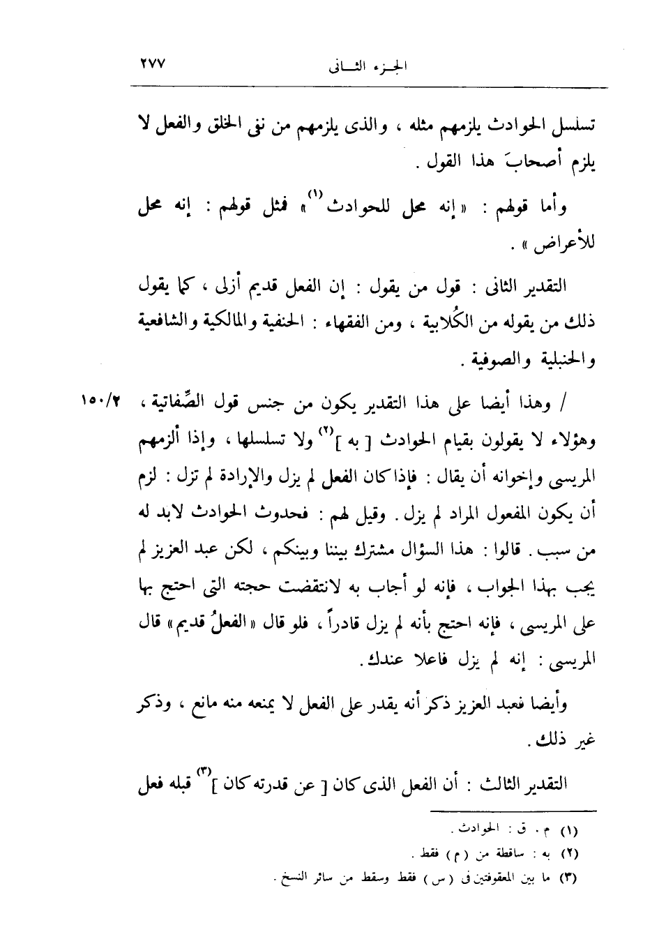 التقدير الثاني: قول من يقول: إن الفعل قديم أزلي، كما يقول ذلك من يقوله من الكلابية، ومن الفقهاء: الحنفية والمالكية والشافعية والحنبلية والصوفية.