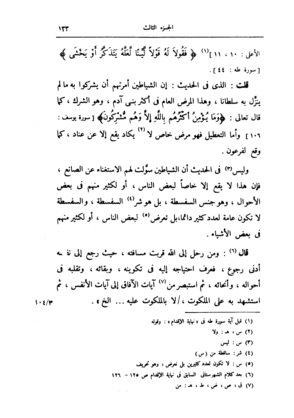 قلت: الذي في الحديث: إن الشياطين امرتهم أن يشركوا به ما لم ينزل به سلطاناً وهذا المرض العام في أكثر بني آدام وهو الشرك كما قال تعالى {وما يؤمن أكثرهم بالله إلا وهم مشركون} يوسف 106 وأما التعطيل فهو مرض خاص لا يكاد يقع إلا عن عناد كما وقع لفرعون.