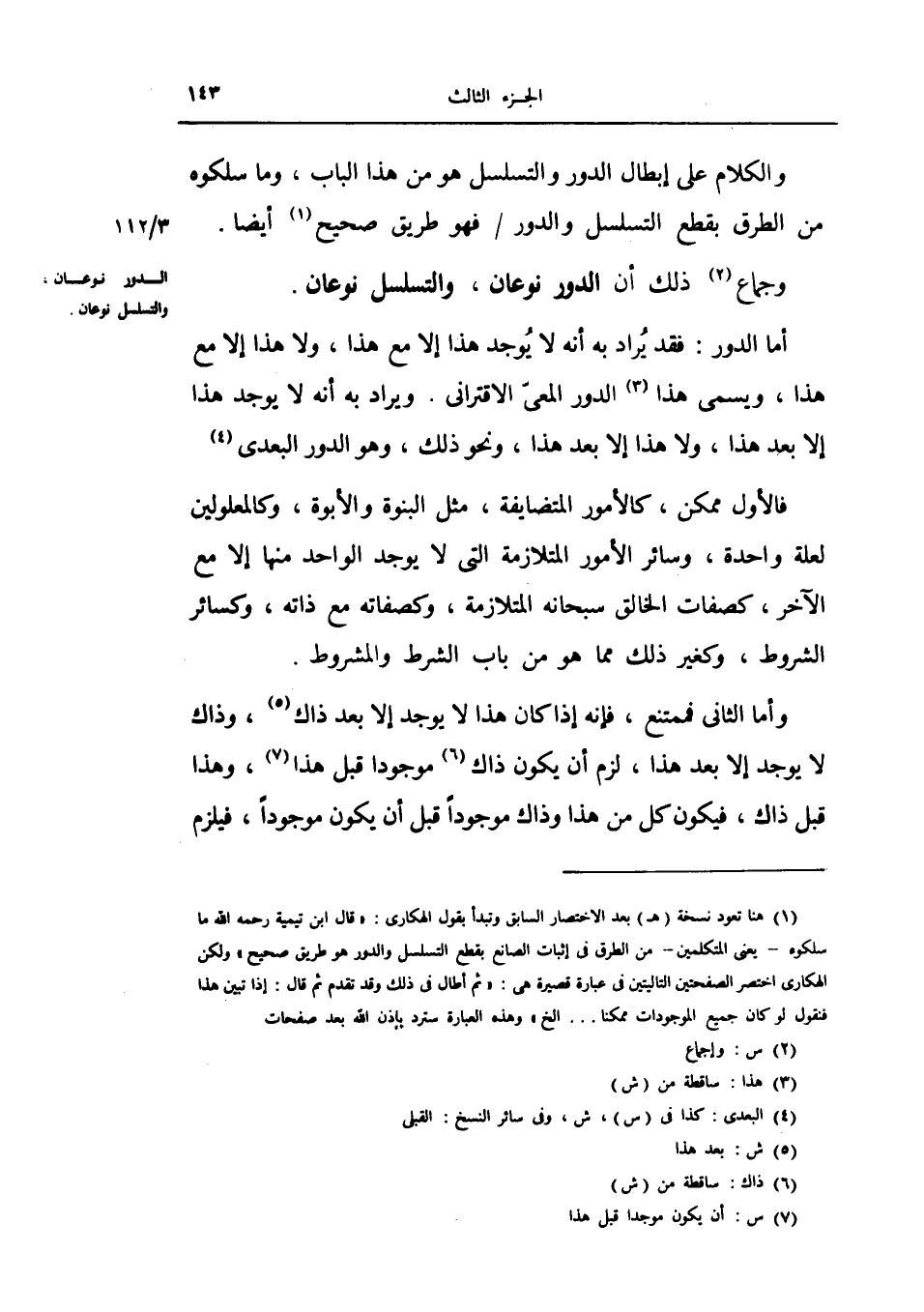 والكلام على إبطال الدور والتسلسل هو من هذا الباب، وما سلكوه من الطرق بقطع التسلسل والدور فهو طريق صحيح أيضاً.