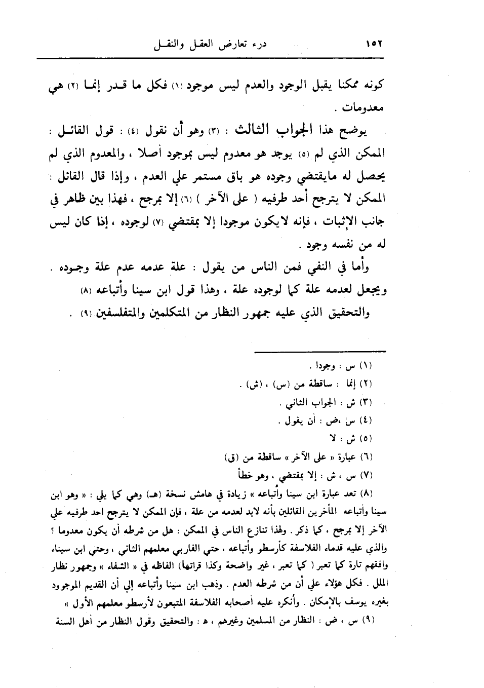 وأما في النفي فمن الناس من يقول: علة عدمه عدم علة وجوده ويجعل لعدمه علة كما لوجوده علة وهذا قول ابن سينا وأتباعه