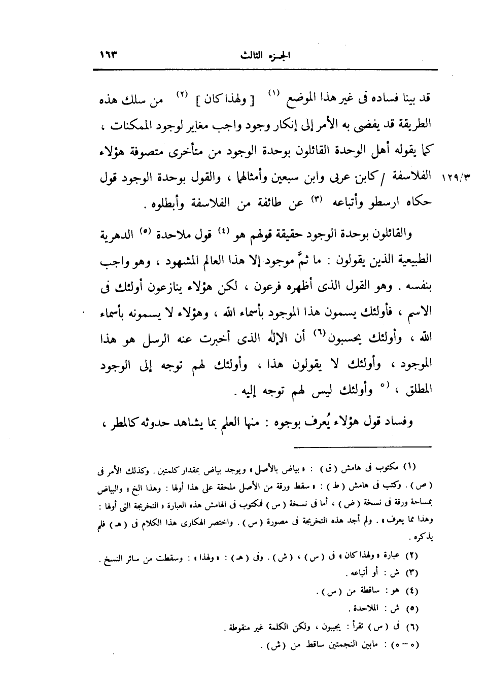 قد بينا فساده في غير هذا الموضع ولهذا كان من سلك هذه الطريقة قد يفضى به الأمر إلى إنكار وجود واجب مغاير لوجود الممكنات كما يقوله أهل الوحوة القائلون بوحدة الوجود من متأخري متصوفة هؤلاء الفلاسفة كابن عربي وابن سبعين وأمثالهما، والقول بوجود قول حكاه ارسطو واتباعه عن طائفة من الفلاسفة وأبطلوه.