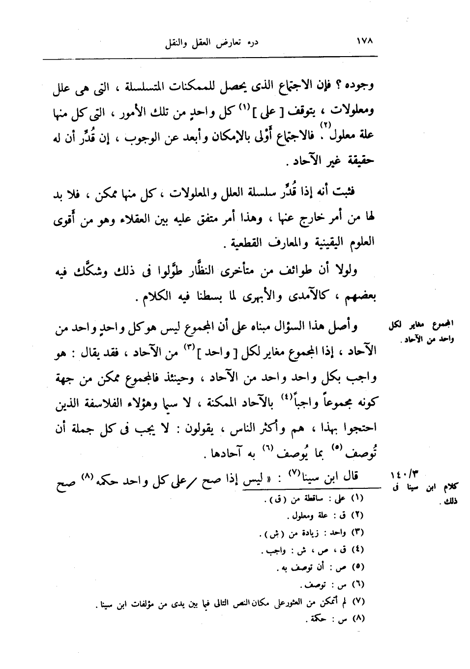وأصل هذا السؤال مبناه على أن المجموع ليس هو كل واحد واحد من الآحاد، إذا المجموع مغاير لكل واحد من الآحاد فقد يقال: هو واجب بكل واحد واحد من الآحاد، وحينئذ فالمجموع ممكن من جهة كونه مجموعاً واجباً بالآحاد الممكنة، لا سيما وهؤلاء الفلاسفة الذين احتجوا بهذا 0 هم واكثر الناس، يقولون: لا يجب في كل جملة ان توصف بما يوصف به آحادها