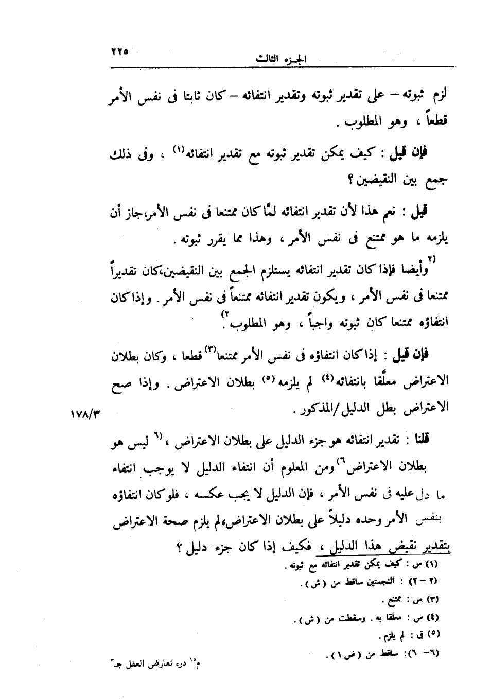 قلنا تقدير انتفائه هو جزء الدليل على بطلان الاعتراض ليس هو بطلان الاعتراض ومن المعلوم أن انتفاء الدليل لا يوجب انتفاء يدل عليه في نفس الأمر فغن الدليل لا يجب عكسه فلو كان انتفاؤه بس الأمر وحده دليلً على بطلان الاعتراض لم يلزم صحة الاعتراض بتقدير نقيض هذا الدليل فكيف إذا كان جزء دليل.