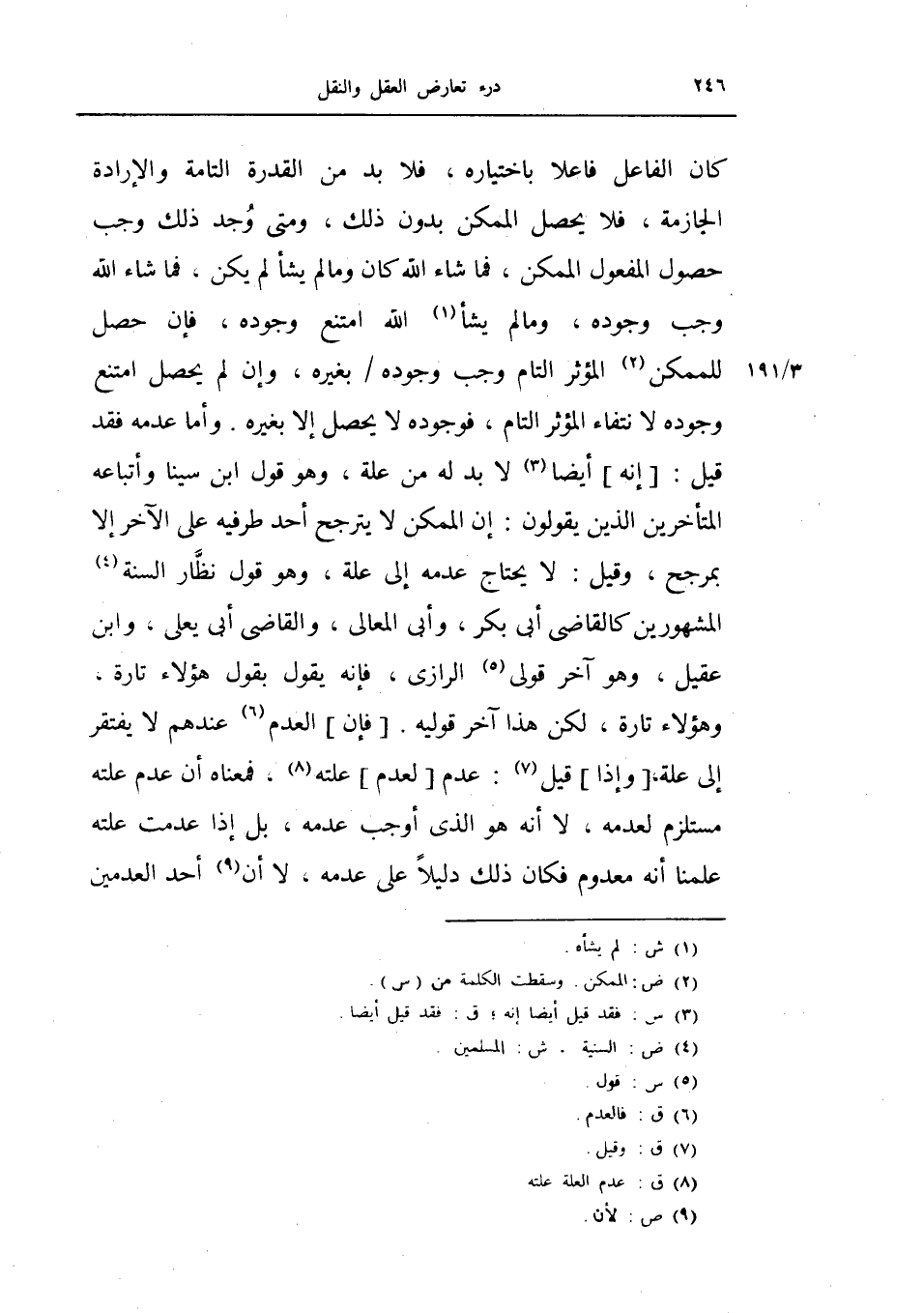 وأما عدمه فقد قيل: إنه أيضاً لا بد له من علة، وهو قول ابن سينا وأتباعه المتأخرين الذين يقولون: إن الممكن لا يترجح أحد طرفيه على الآخر إلا بمرجح.