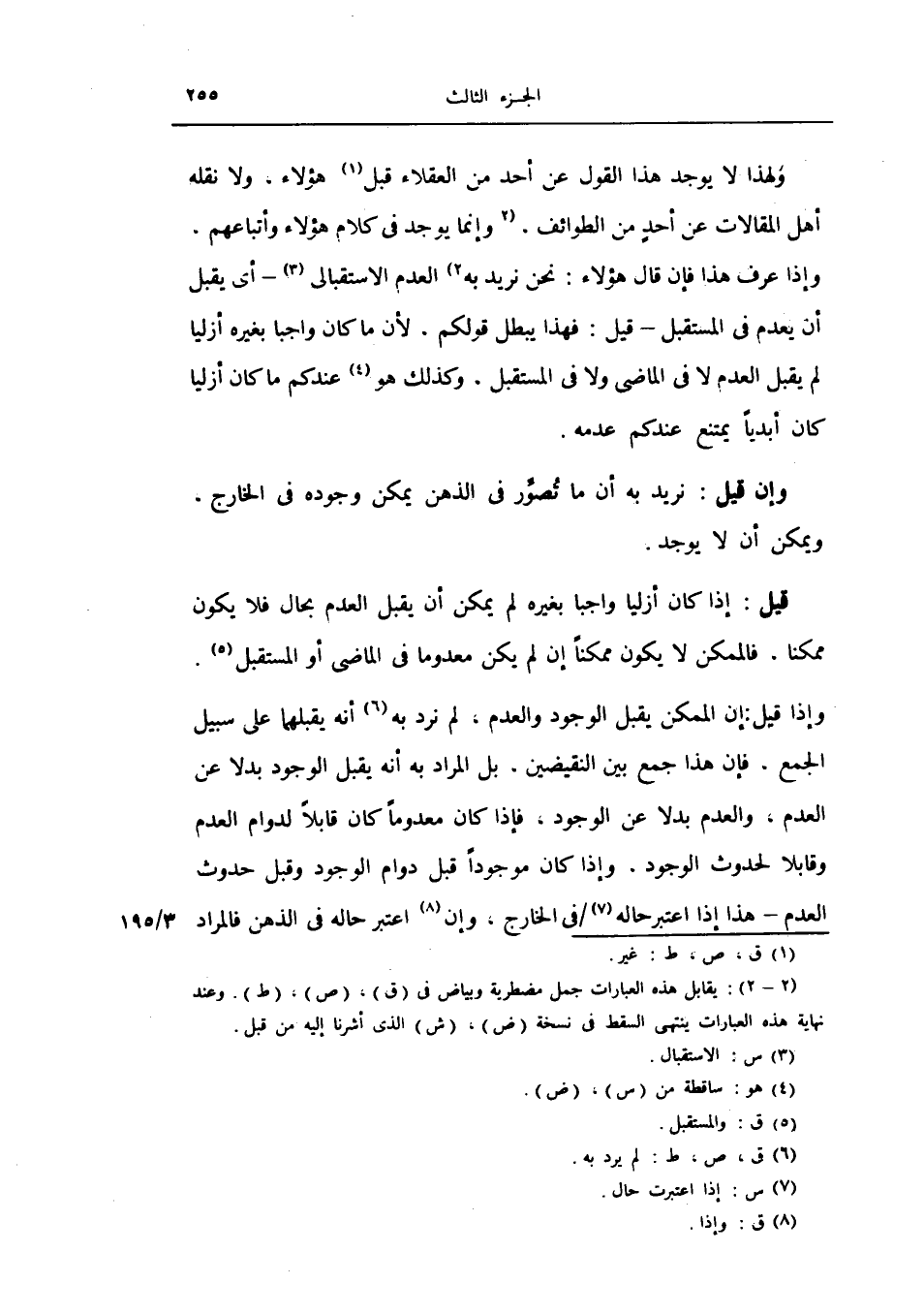 وإنما يوجد في كلام هؤلاء وأتباعهم وإذا عرف هذا فإن قال هؤلاء: نحن نريد به العدم الاستقبالي أي يقبل ان يعدم في المستقبل قيل فهذا يبطل قولكم.