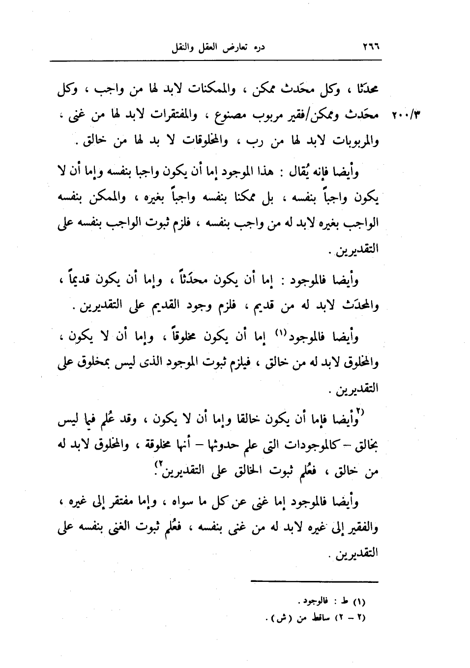محدثاً وكل محدث ممكن والممكنات لا بد لها من واجب، وكل محدث وممكن فقير مربوب مصنوع والمفتقرات لا بد لها من غني والمربوبات لا بد لها من رب والمخلوقات لا بد لها من خالق.