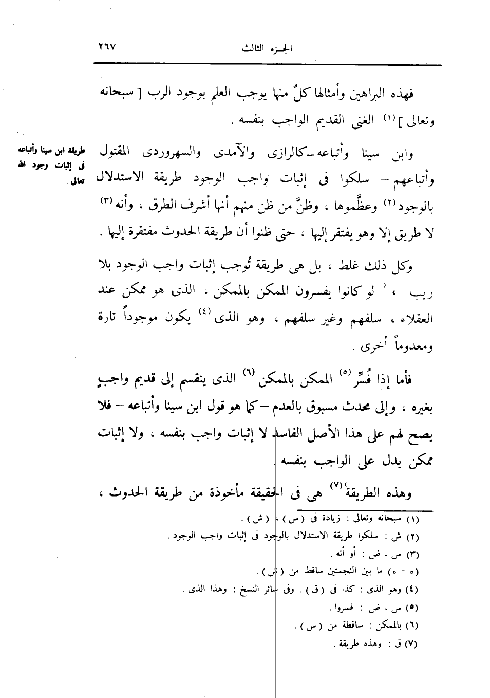 وابن سينا وأتباعه كالرازي والآمدي والسهروردي المقتول وأتباعهم سلكوا في إثبات واجب الوجود طريقة الاستدلال بالوجود وعظموها وظن من ظن منهم انها أشرف الطرق وأنه لا طريق إلا وهو يفتقر إليها حتى ظنوا أن طريقة الحدوث مفتقرة إليها.