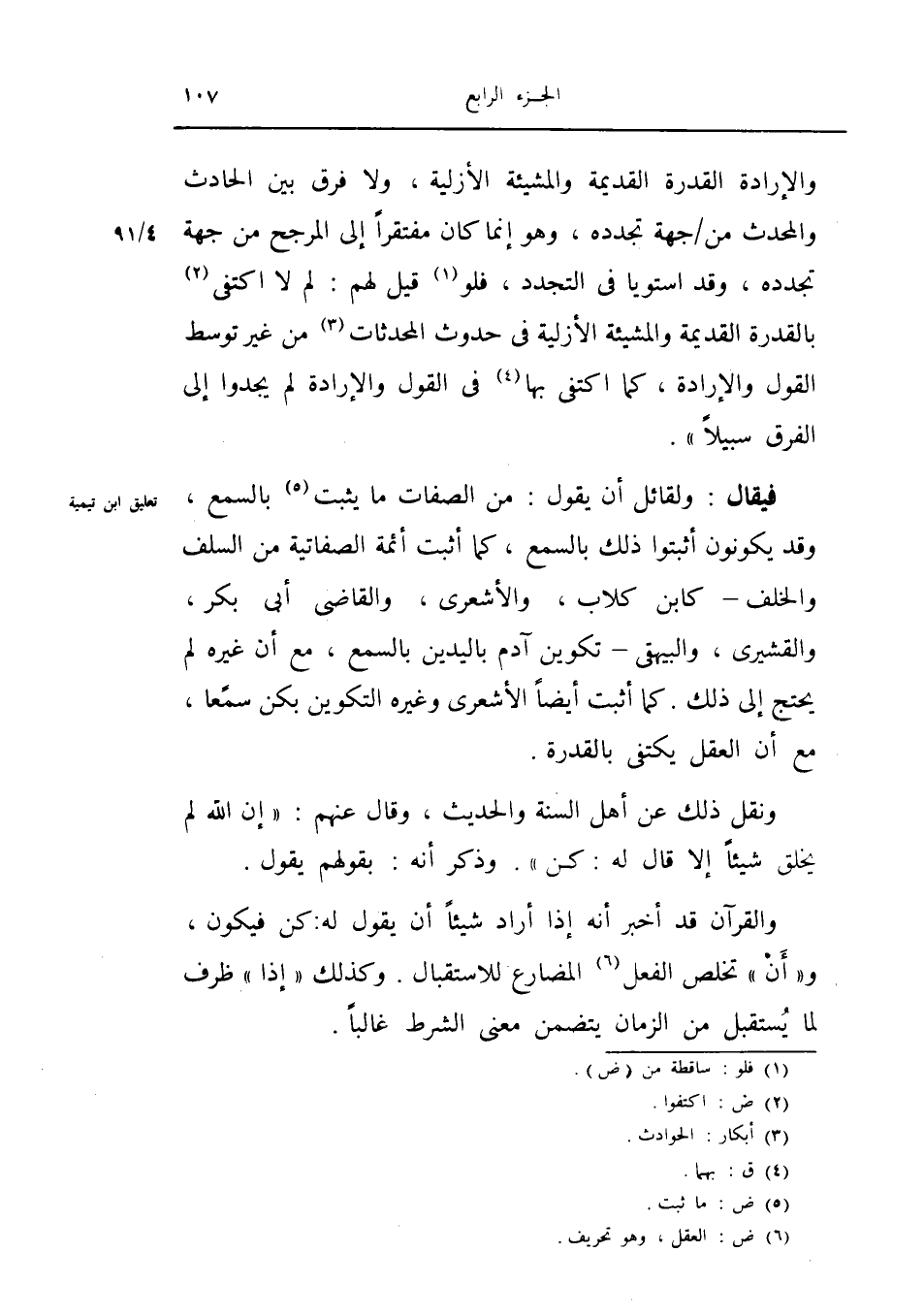 ونقل ذلك عن أهل السنة والحديث، وقال عنهم إن الله لم يخلق شيئاً إلا قال له: كن.
