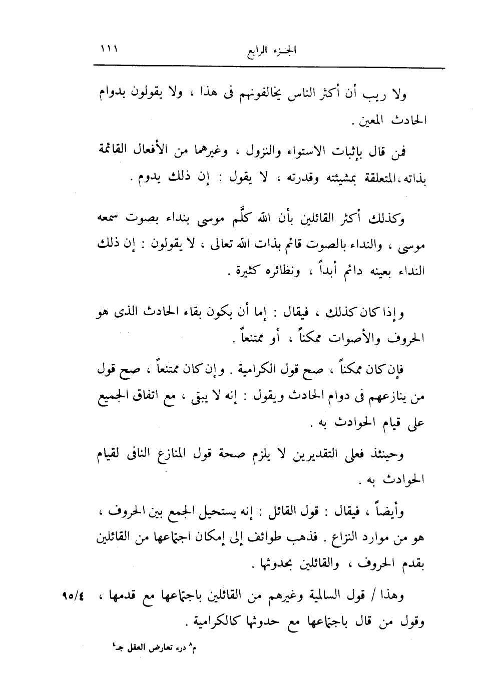وإذا كان كذلك، فيقال إما أن يكون بقاء الحادث الذي هو الحروف والأصوات ممكناً، أو ممتنعاً.