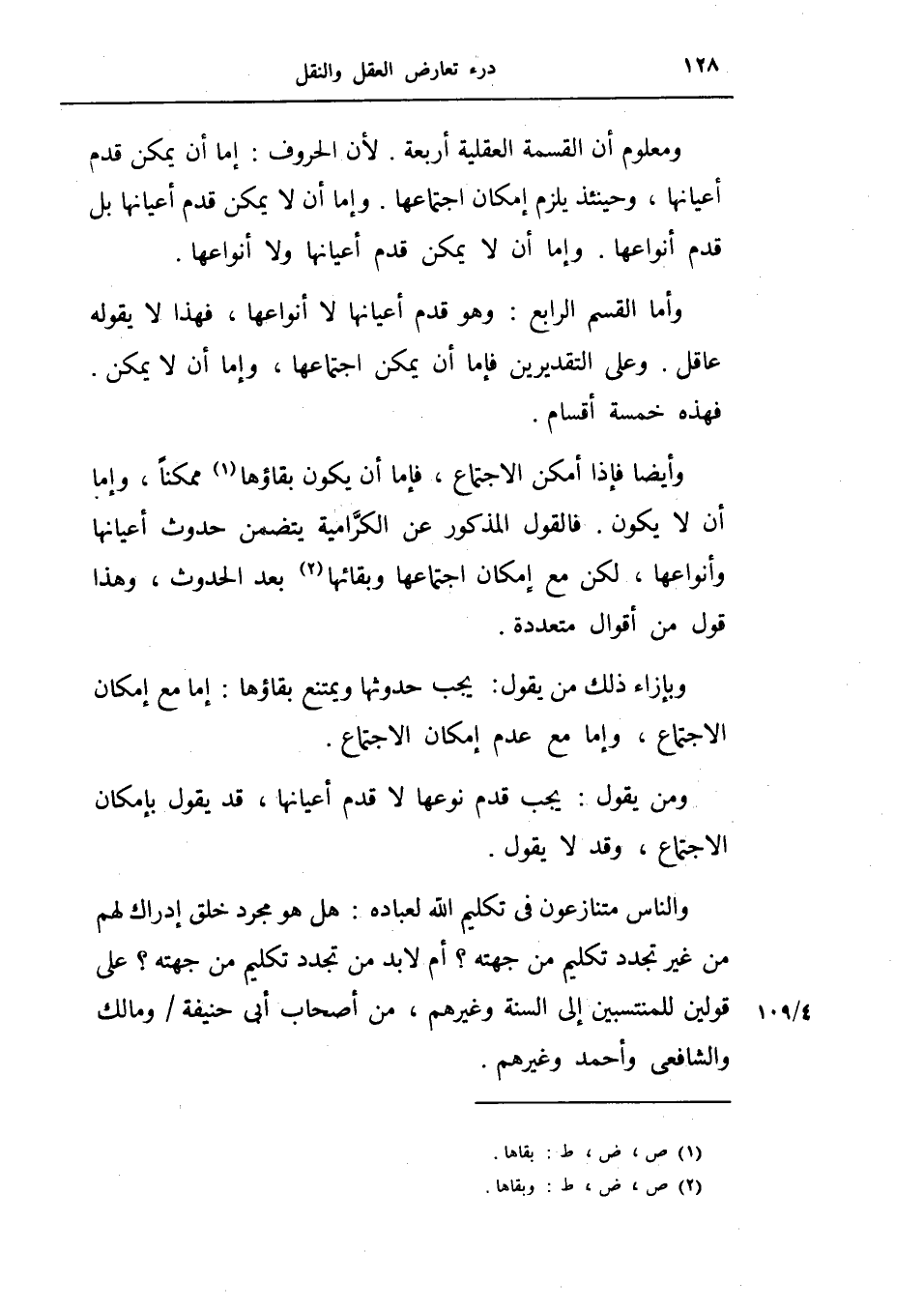 وأيضاً فإذا أمكن الاجتماع، فإما ان يكون بقاؤها ممكناً، وإما أن لا يكون فالقول المذكور عن الكرامية يتضمن حدوث اعيانها وأنواعها، لكن مع إمكان اجتماعها وبقائها بعد الحدوث وهذا قول من أقوال متعددة.