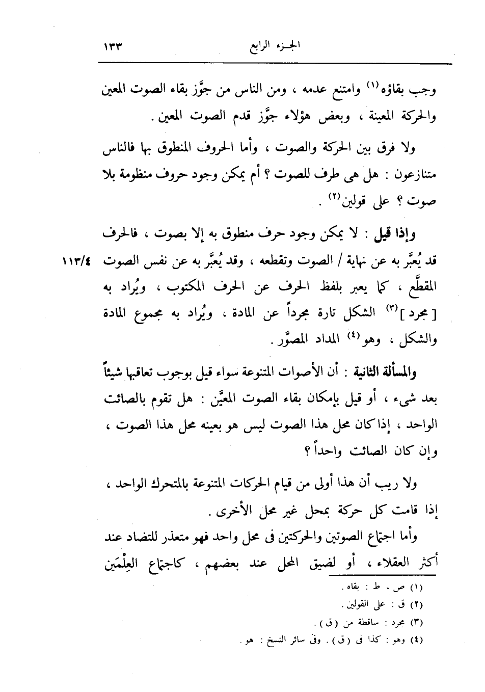 وجب بقاؤه وامتنع عدمه ومن الناس من جوز بقاء الصوت المعين والحركة المعينة وبعض هؤلاء جوز قدم الصوت المعين.