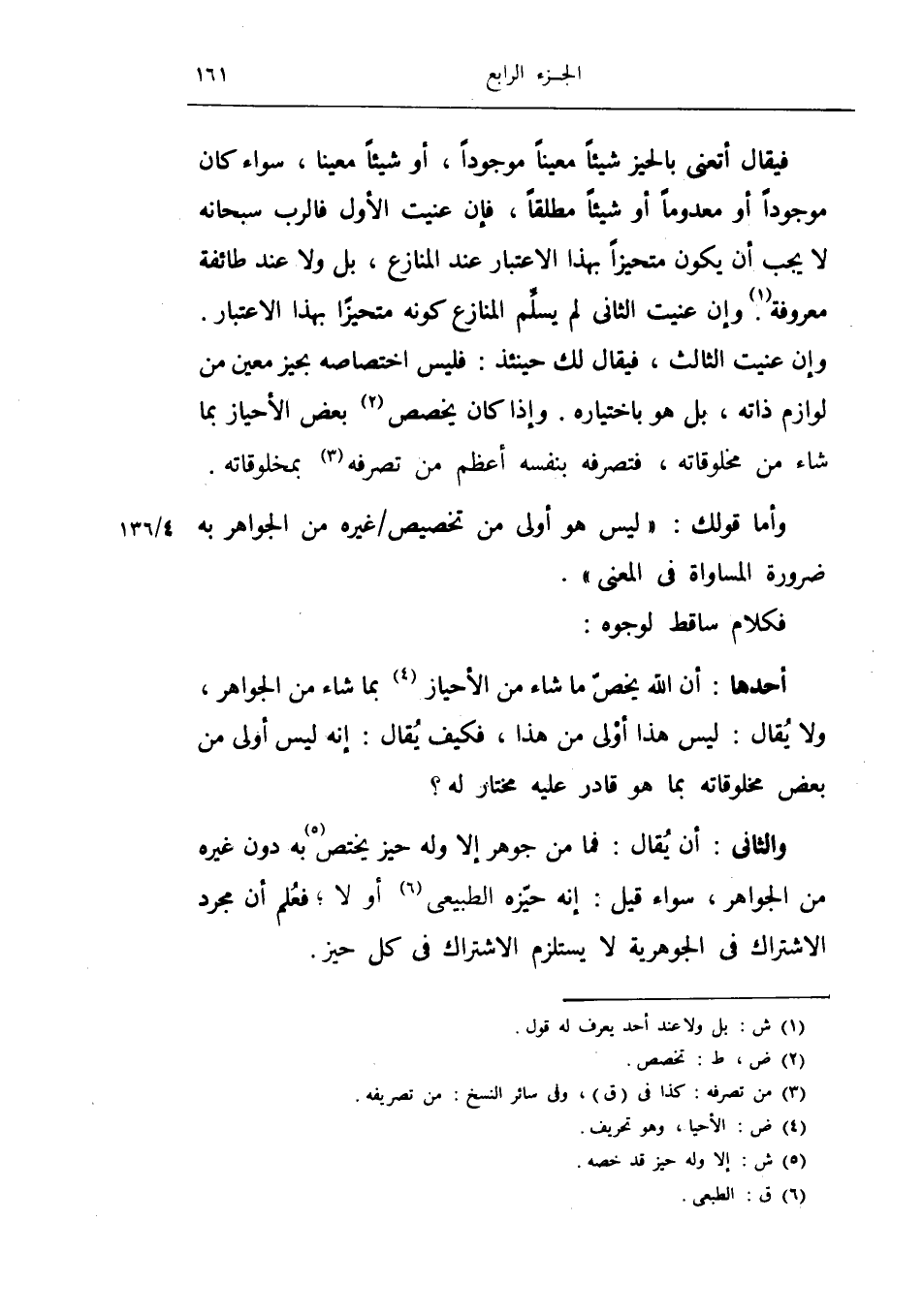 وأما قولك ليس هو أولى من تخصيص غيره من الجواهر به ضرورة المساواة في المعنى.