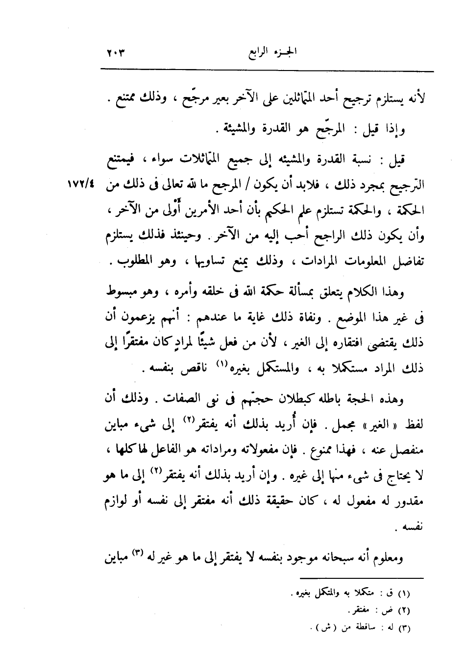 قيل نسبة القدرة والمشيئة إلى جميع المتماثلات سواء فيمتنع الترجيح بمجرد ذلك، فلا بد أن يكون المرجح ما لله تعالى في ذلك من الحكمة، والحكمة تستلزم علم الحكيم بأن أحد الأمرين أولى من الآخر، وأن يكون ذلك الراجح أحب إليه من الآخر.