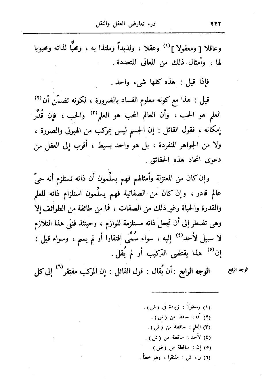 وإن كان من المعتزلة وامثالهم فهم يسلمون ذاته تستلزم أنه حي عالم قادر وإن كان من الصفاتية فهم يسلمون استلزام ذاته للعلم والقدرة والحياة وغير ذلك من الصفات فما من طائفة من الطوائف إلا وهي تضطر إلى أن تجعل ذاته مستلزمة للوازم وحينئذ فنفي هذا التلازم لا سبيل لأحد إليه سواء سمي افتقاراً أو يسم وسواء قيل إن هذا يقتضي التركيب أو لم يقل.