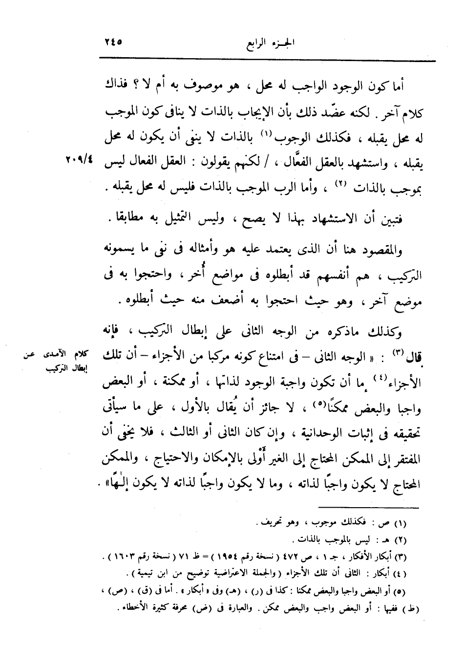 والمقصود هنا أن الذي يعتمد عليه هو وأمثاله في نفي ما يسمونه التركيب، هم أنفسهم قد أبطلوه في مواضع أخر واحتجوا به في موضع آخر وهو حيث احتجوا به أضعف منه حيث أبطلوه.