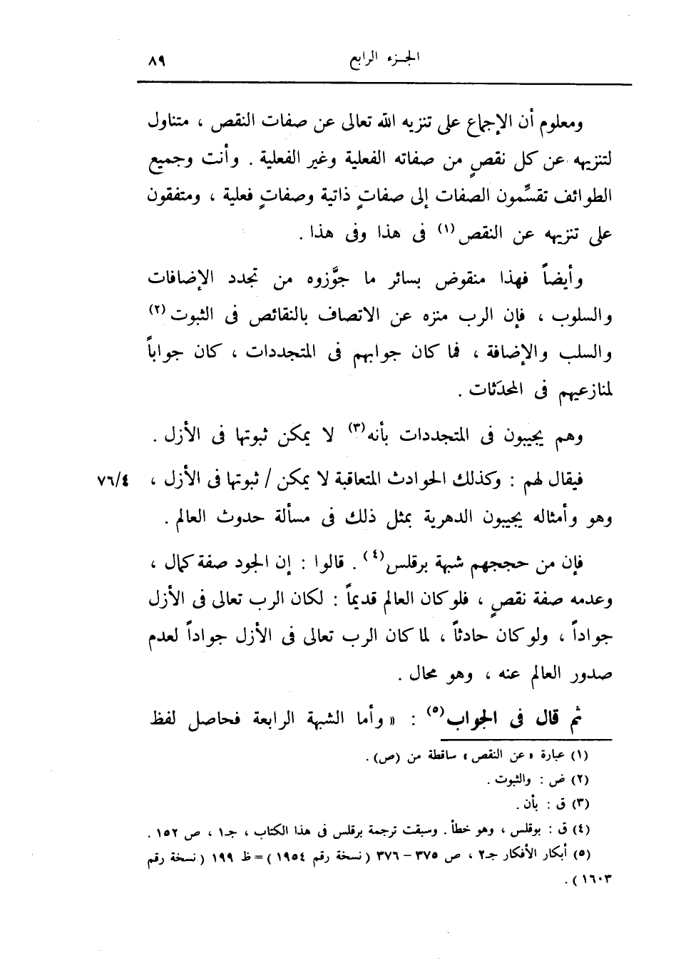 ثم قال في الجواب وأما الشبهة الرابعة فحاصل لفظ