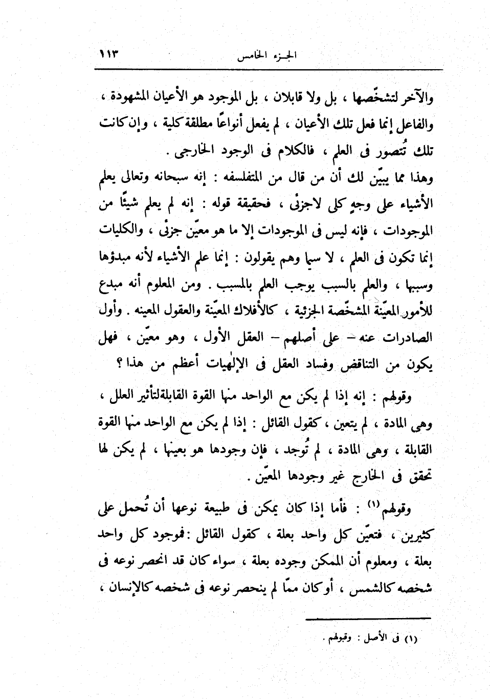 وقولهم فأما إذا كان يمكن في طبيعة نوعها أن تحمل على كثيرين فتعين كل واحد بعلة كقول القائل فموجود كل واحد بعلة ومعلوم أن الممكن وجوده بعلة سواء كان قد انحصر نوعه في شخصه كالشمس أو كان مما لم ينحصر نوعه في شخصه كالإنسان