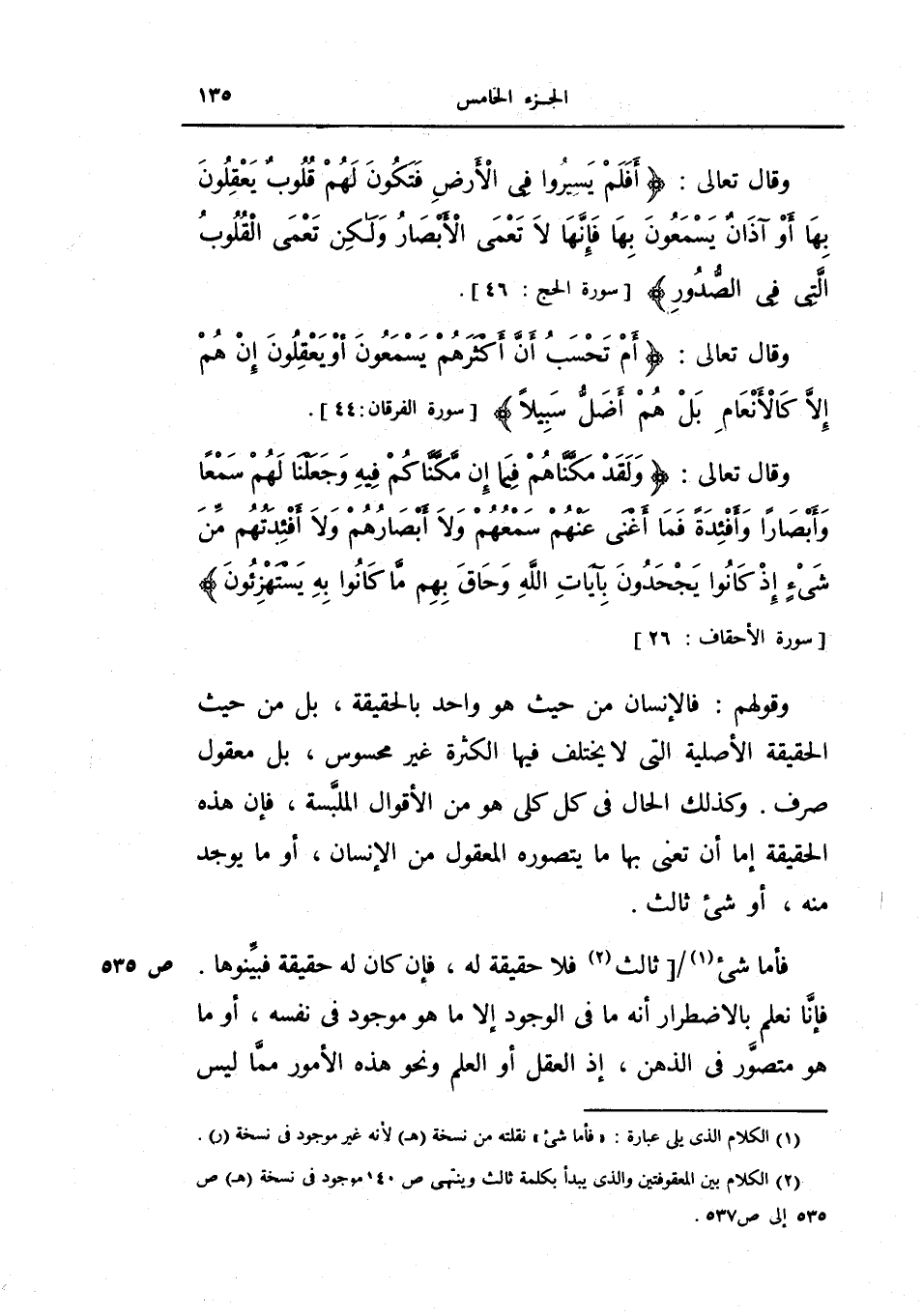 وقال تعالى {أفلم يسيروا في الأرض فتكون لهم قلوب يعقلون بها أو آذان يسمعون بها فإنها لا تعمى الأبصار ولكن تعمى القلوب التي في الصدور} الحج 46.