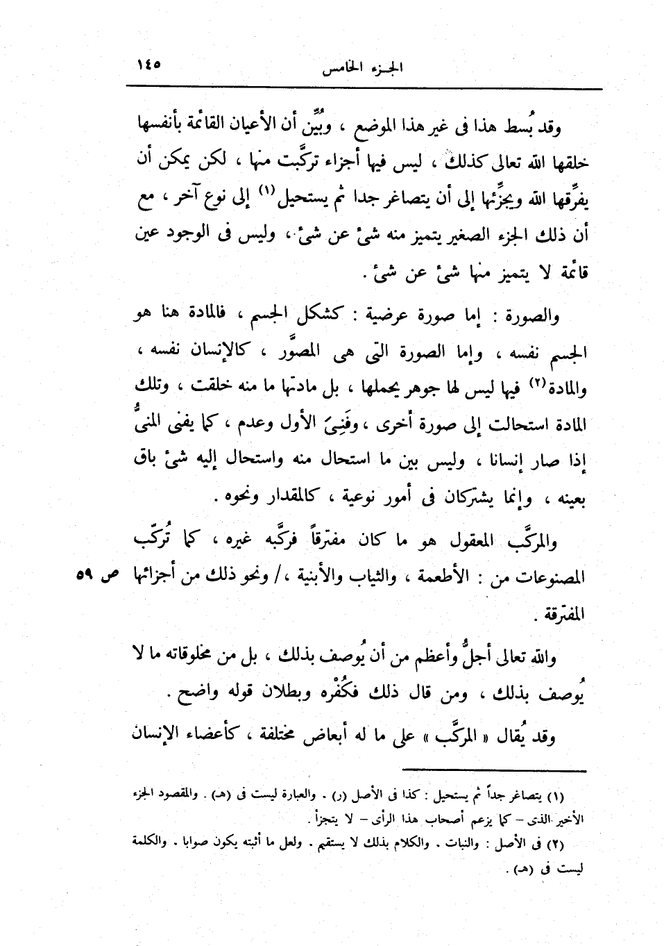 وقد بسط هذا في غير هذا الموضع وبين أن الأعيان القائمة بأنفسها خلقها الله تعالى كذلك ليس فيها أجزاء تركبت منها لكن يمكن أن يفرقها الله ويجزئها إلى أن يتصاغر جداً ثم يستحيل إلى نوع آخر من أن ذلك الجزء الصغير يتميز منه شيء عن شيء وليس في الوجود عين قائمة لا يتميز منها شيء عن شيء.