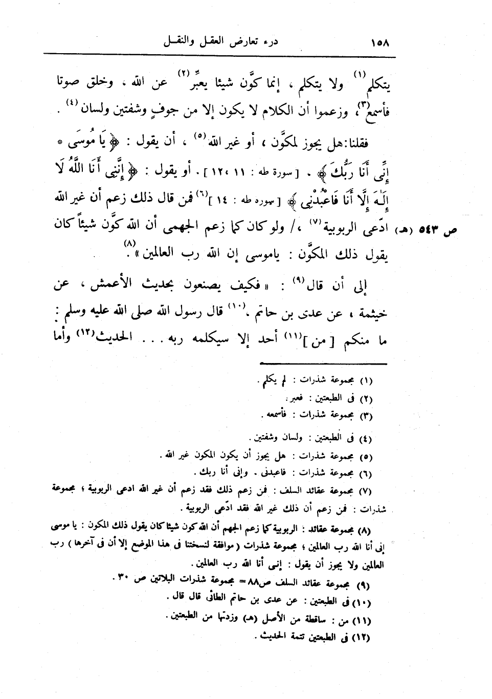 فقلنا: هل يجوز لمكون أو غير الله أن يقول {يا موسى * إني أنا ربك} طه 11- 12 أو يقول {إنني أنا الله لا إله إلا أنا فاعبدني} طه 14 فمن قال ذلك زعم ان غير الله ادعى الربوبية ولو كان كما زعم الجهمي أن الله كون شيئاً كان يقول ذلك المكون يا موسى إن الله رب العالمين.
