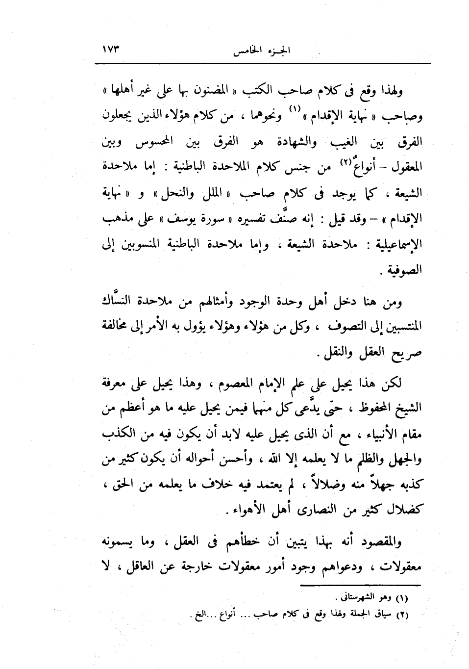 ولهذا وقع في كلام صاحب الكتب المضنون بها على غير أهلها وصاحب نهاية الإقدام ونحوهما من كلام هؤلاء الذين يجعلون الفرق بين الغيب والشهادة هو الفرق بين المحسوس وبين المعقول أنواع من جنس كلام الملاحدة الباطنية إما ملاحدة الشيعة، كما يوجد في كلام صاحب الملل والنحل ونهاية الإقدام وقد قيل إنه صنف تفسيره سورة يوسف على مذهب الإسماعيلية: ملاحدة الشيعة وإما ملاحدة الباطنية المنسوبين إلى الصوفية.