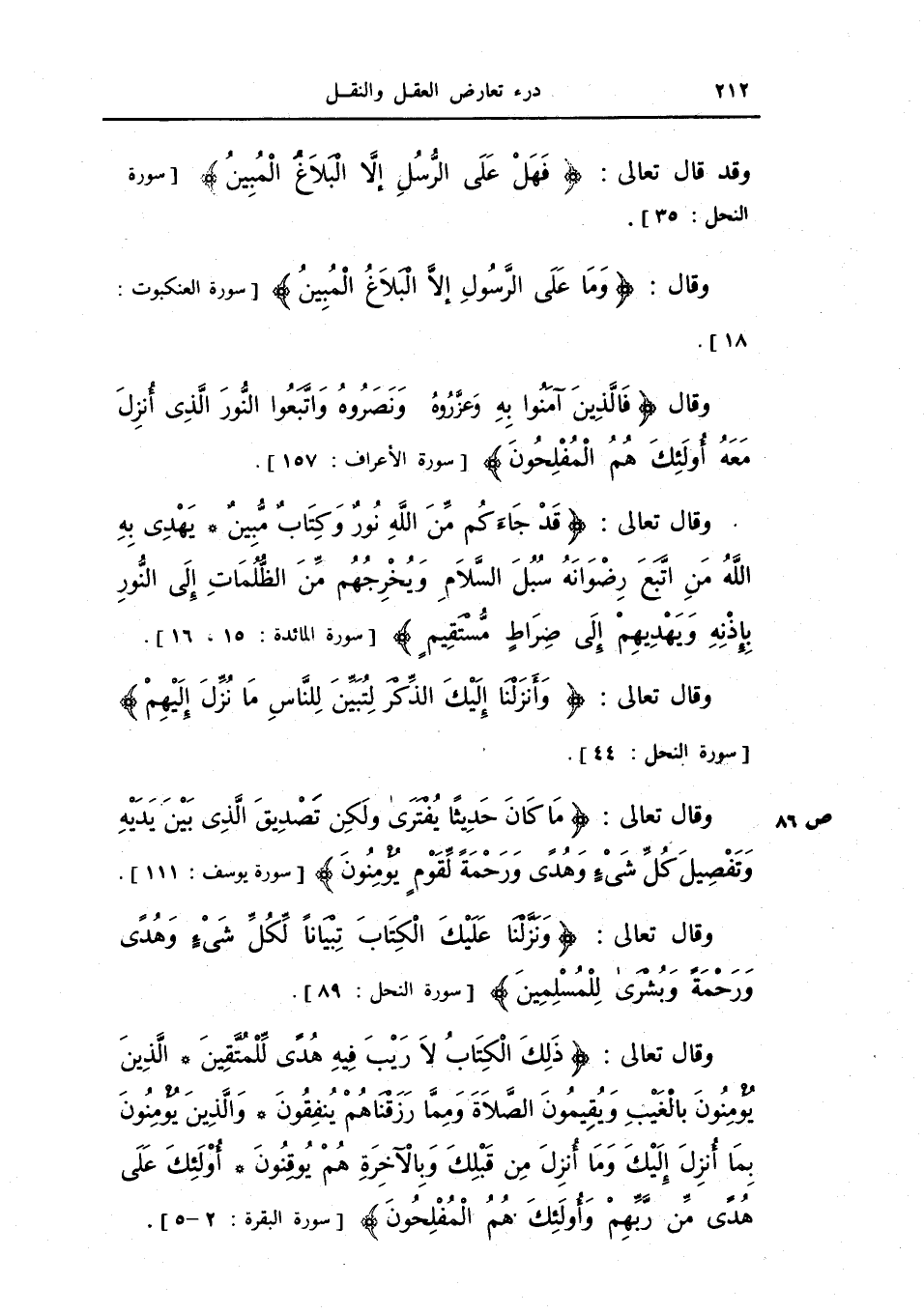 وقال تعالى: {ونزلنا عليك الكتاب تبيانا لكل شيء وهدى ورحمة وبشرى للمسلمين} [النحل: 89] .