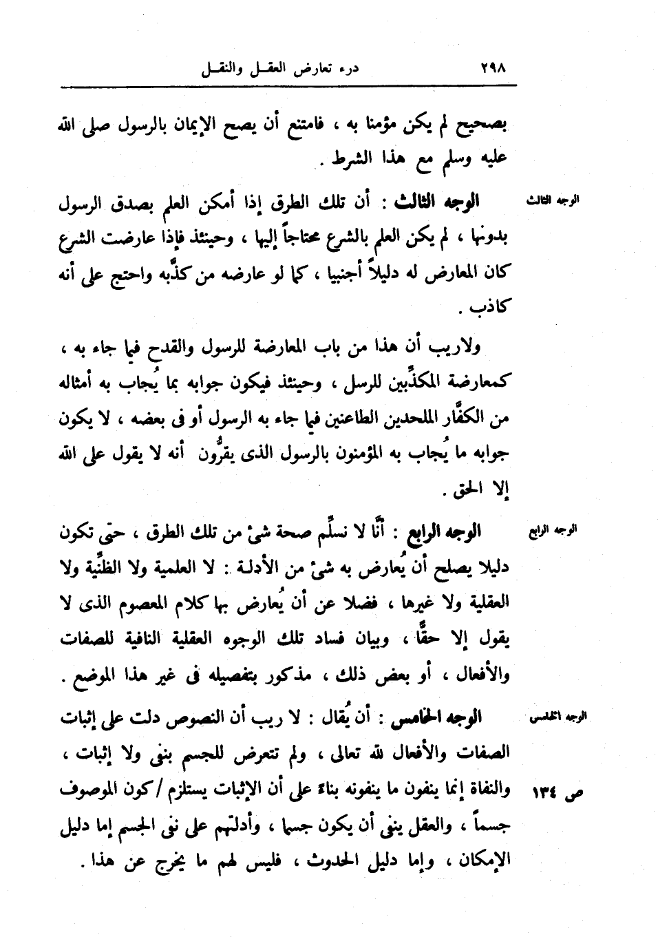 أنا لا نسلم صحة شيء من تلك الطرق، حتى تكون دليلا يصلح أن يعارض به شيء من الأدلة: لا العلمية ولا الظنية ولا العقلية ولا غيرها، فضلا عن أن يعارض بها كلام المعصوم الذي لا يقول إلا حقاً، وبيان فساد تلك الوجوه العقلية النافية للصفات والأفعال، أو بعض ذلك، مذكور بتفصيله في غير هذا الموضع.