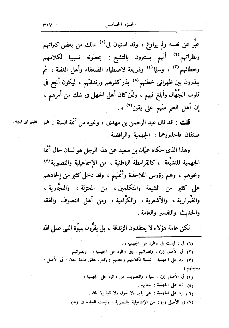 قلت: قد قال عبد الرحمن بن مهدي وغيره من أئمة السنة: هما صنفان فاحذروهما: الجهمية والرافضة.