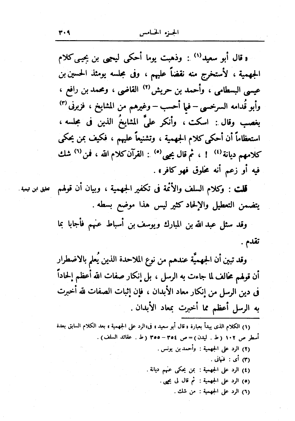 قلت: وكلام السلف والأئمة في تكفير الجهمية، وبيان أن قولهم يتضمن التعطيل والإلحاد كثير ليس هذا موضع بسطه.