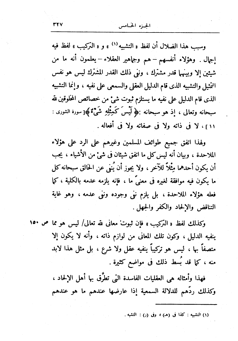 وسبب هذا الضلال أن لفظ (التشبيه) و (التركيب) لفظ فيه إجمال.