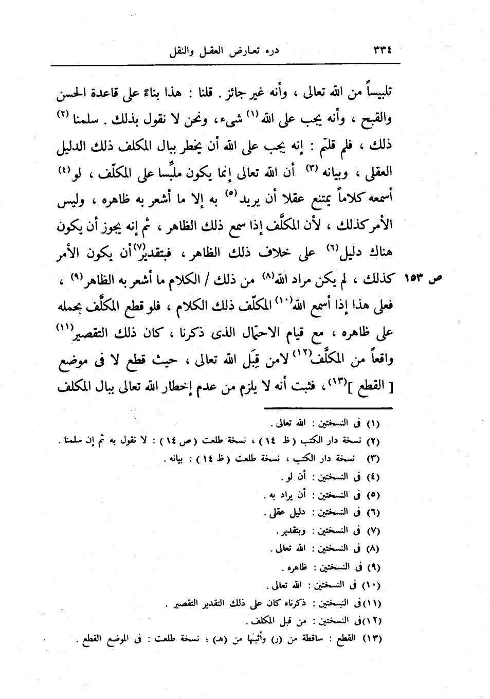سلمنا ذلك، فلم قلتم: إنه يجب على الله أن يخطر ببال المكلف ذلك الدليل العقلي، وبيانه أن الله تعالى إنما يكون ملبساً على المكلف، لو أسمعه كلاماً يمتنع عقلاً أن يريد به إلا ما أشعر به ظاهره، وليس الأمر كذلك، لأن المكلف إذا سمع ذلك الظاهر، ثم إنه يجوز أن يكون هناك دليل على خلاف ذلك الظاهر، فبتقدير أن يكون الأمر كذلك، لم يكن مراد الله من ذلك الكلام ما أشعر به الظاهر، فعلى هذا إذا أسمع الله المكلف ذلك الكلام، فلو قطع المكلف بحمله على ظاهره، مع قيام الاحتمال الذي ذكرنا، كان ذلك التقصير واقعاً من المكلف لا من قبل الله تعالى، حيث قطع لا في موضع القطع، فثبت إنه لا يلزم من عدم إخطار الله تعالى ببال المكلف