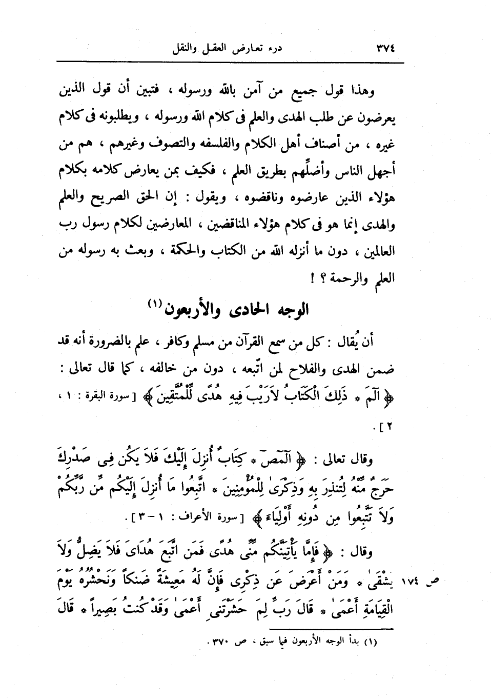 وهذا قول جميع من آمن بالله ورسوله، فتبين أن قول الذين يعرضون عن طلب الهدى والعلم في كلام الله ورسوله، ويطلبونه في كلام غيره، من أصناف أهل الكلام والفلسفة والتصوف وغيرهم، هم من أجهل الناس وأضلهم بطريق العلم، فكيف بمن يعارض كلامه بكلام الذين عارضوه، وناقضوه، ويقول أن الحق الصريح والعلم والهدى إنما هو في كلام هؤلاء المناقضين، المعارضين لكلام رسول رب العالمين، دون ما أنزله الله من الكتاب والحكمة، وبعث هـ رسوله من العلم والرحمة.