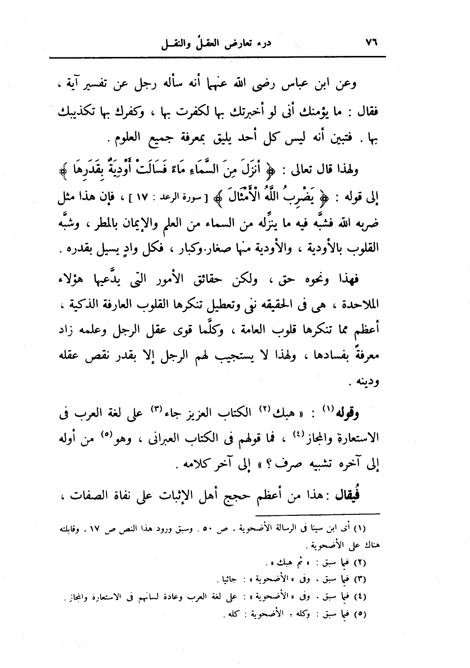 ولهذا قال تعالى {أنزل من السماء ماء فسالت أودية بقدرها} إلى قوله {يضرب الله الأمثال} الرعد 17، فإن هذا مثل ضربة الله فشبه فيه ما ينزله من السماء من العلم والإيمان بالمطر، وشبه القلوب بالأودية، والأودية منها صغار وكبار، فكل واد يسيل بقدره.