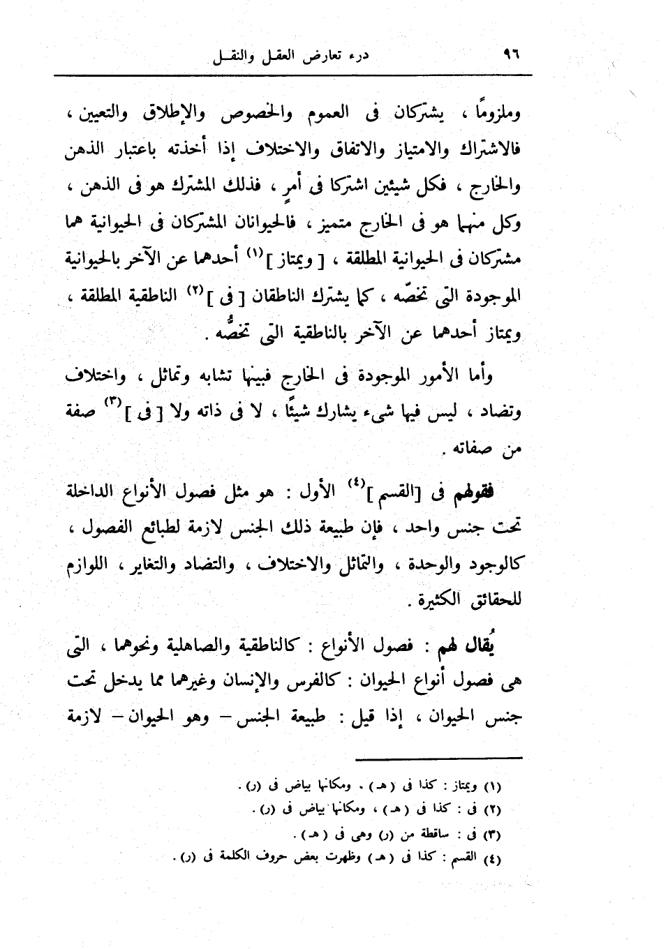 يقال لهم: فصول الأنواع: كالناطقية والصاهلية ونحوهما، التي هي فصول أنواع الحيوان كالفرس والإنسان وغيرهما مما يدخل تحت جنس الحيوان إذا قيل طبيعة الجنس وهو الحيوان لازمة