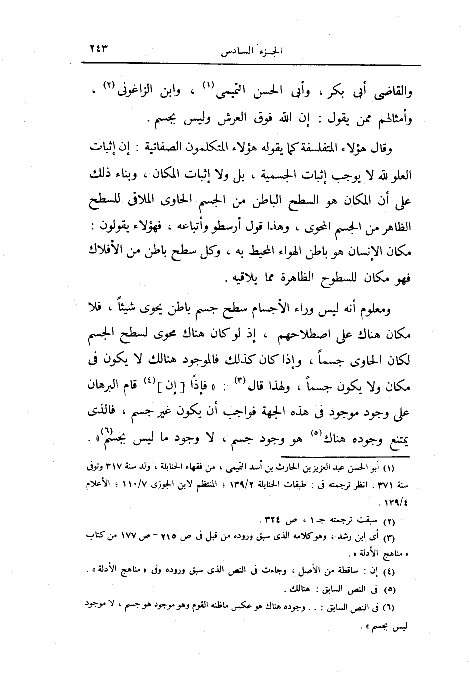 والقاضي أبي بكر، وأبي الحسن التميمي، وابن الزاغوني، وأمثالهم ممن يقول إن لله فوق العرش وليس بجسم.