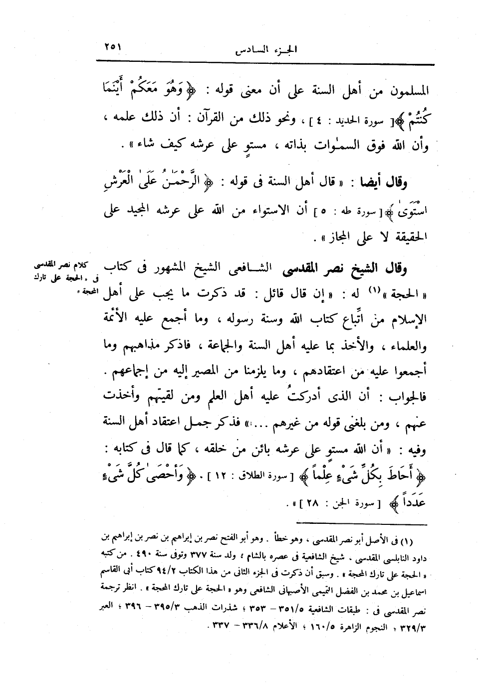 كلام نصر المقدسي في الحجة على تارك المحجة