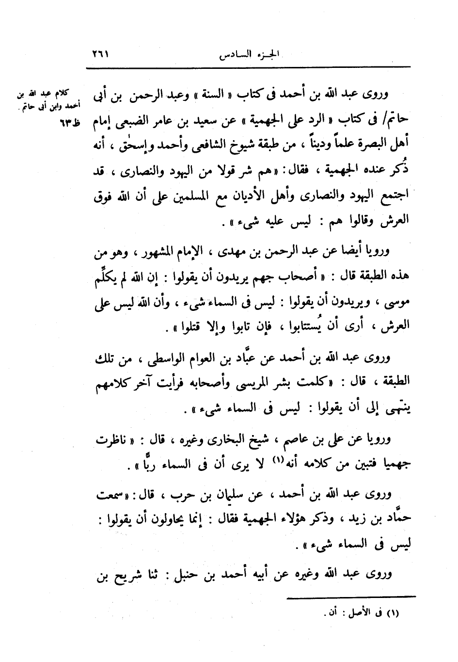 كلام عبد الله بن أحمد في كتاب السنة