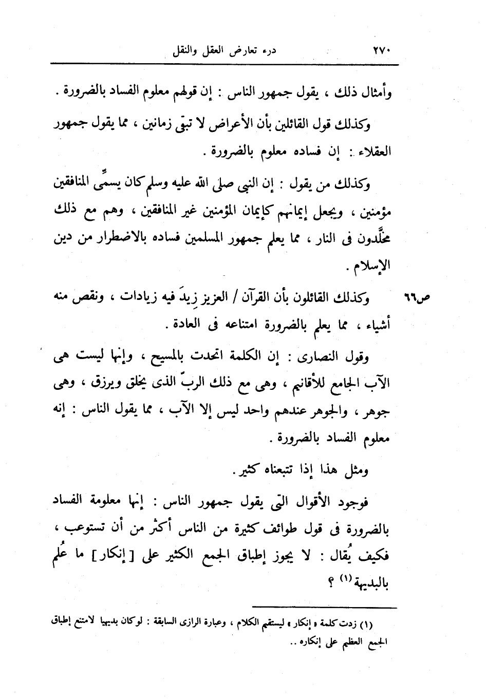 وأمثال ذلك، يقول جمهور الناس: إن قولهم معلوم الفساد بالضرورة.