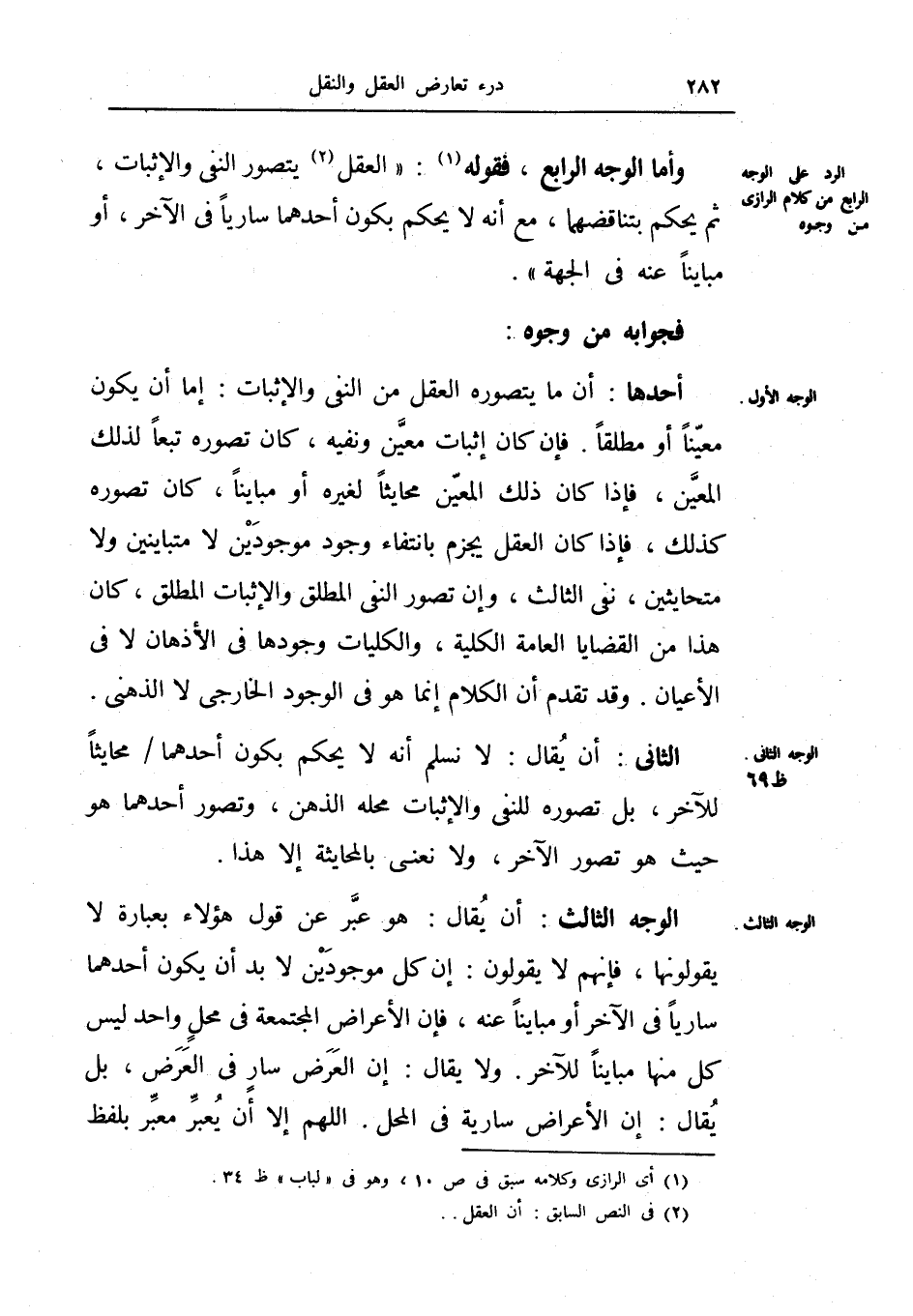 الرد على الوجه الرابع من كلام الرازي من وجوه: الوجه الأول