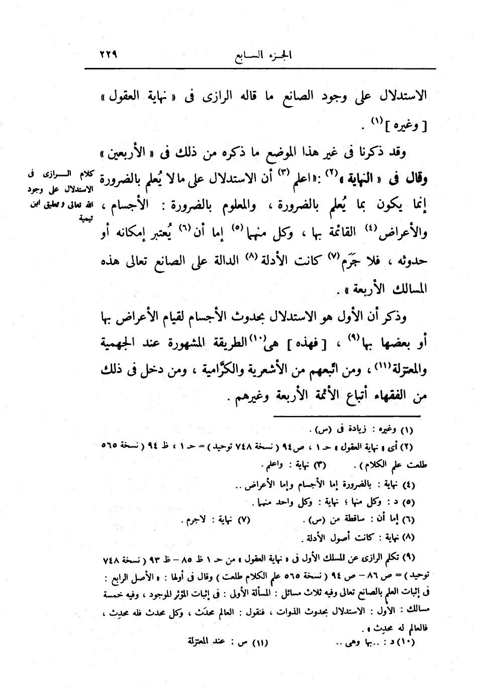 كلام الرازي في الاستدلال على وجود الله تعالى وتعليق ابن تيمية
