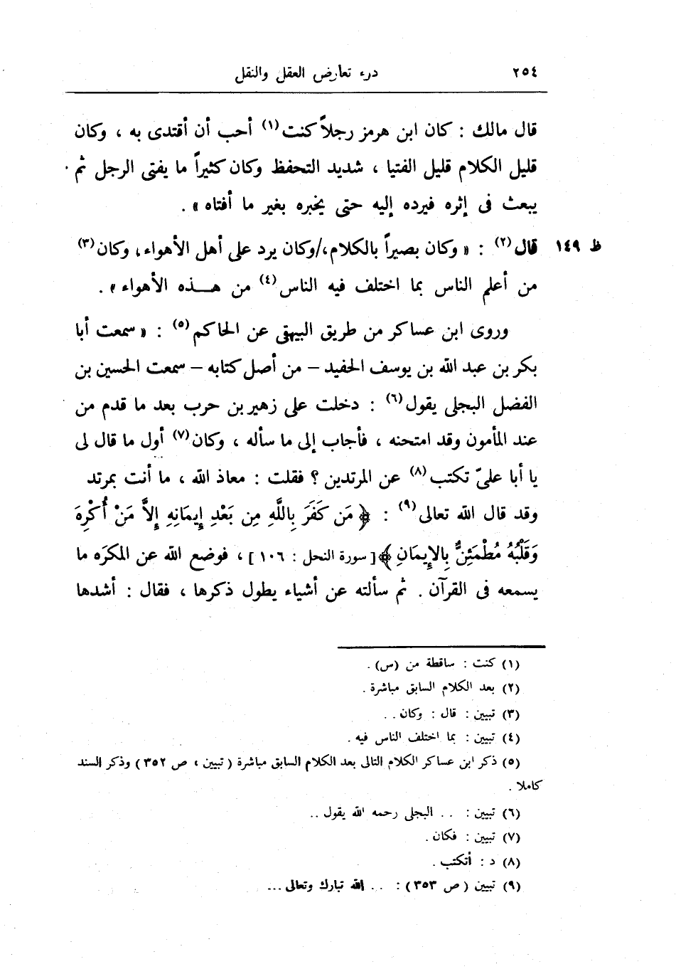 قال: وكان بصيرا بالكلام، وكان يرد على أهل الأهواء، وكان من علم الناس بما اختلفت فيه الناس من هذه الأهواء.