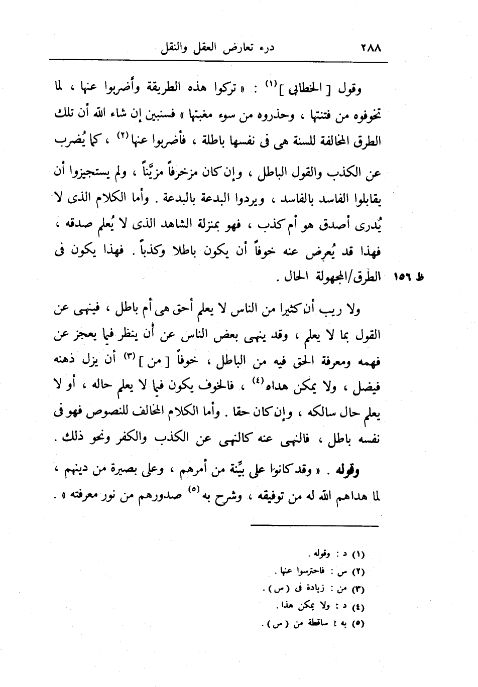 وقول الخطابي: (تركوا هذه الطريقة وأضربوا عنها، لما تخوفوه من فتنتها، وحذروه من سوء مغبتها) فسنبين إن شاء الله أن تلك الطرق المخالفة للسنة هي في نفسها باطلة، فأضربوا عنها، كما يضرب عن الكذب والقول الباطل، وإن كان مزخرفاً مزيناً، ولم يستجيزوا أن يقابلوا الفاسد بالفاسد، ويردوا البدعة بالبدعة.