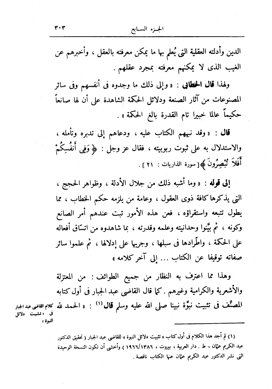 كلام القاضي عبد الجبار في تثبيت دلائل النبوة