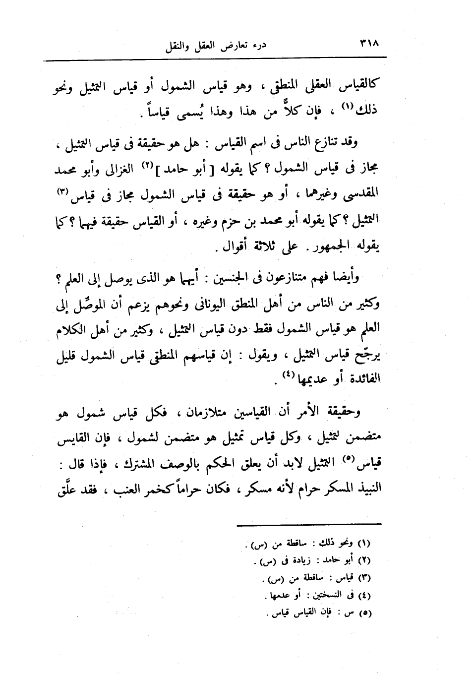 وأيضاً فهم متنازعون في الجنسين: أيهما هو الذي يوصل إلى العلم؟ كثير من الناس من أهل النطق اليوناني ونحوهم يزعم أن الموصل إلى العلم هو قياس الشمول فقط دون قياس التمثيل، وكثير من أهل الكلام يرجح قياس التمثيل، ويقول: إن قياسهم المنطقي قياس الشمول قليل الفائدة أو عديمها.
