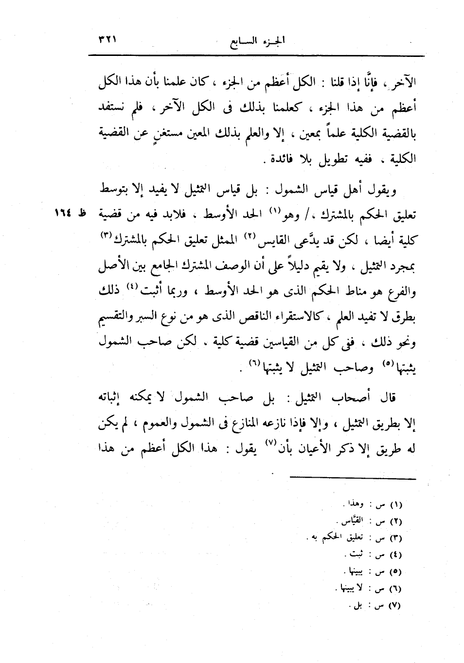قال أصحاب التمثيل: بل صاحب الشمول لا يمكنه إثباته إلا بطريق التمثيل، وإلا فإذا نازعه المنازع في الشمول والعموم، لم يكن له طريق إلا ذكر الأعيان بأن يقول: هذا الكل أعظم من هذا