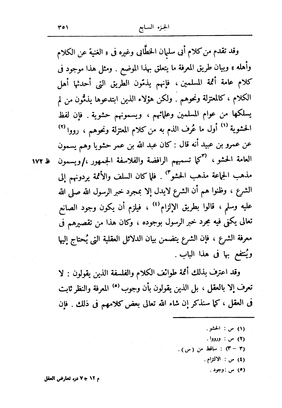 فإن لفظ الحشوية أول ما عرف الذم به من كلام المتعتزلة ونحوهم، رووا عن عمر بن عبيد أنه قال: عبد الله بن عمر حشوياً وهم يسمون العامة الحشو، كما تسميهم الرافضة والفلاسفة الجمهور، ويسمون مذهب الجماعة مذهب الحشو.