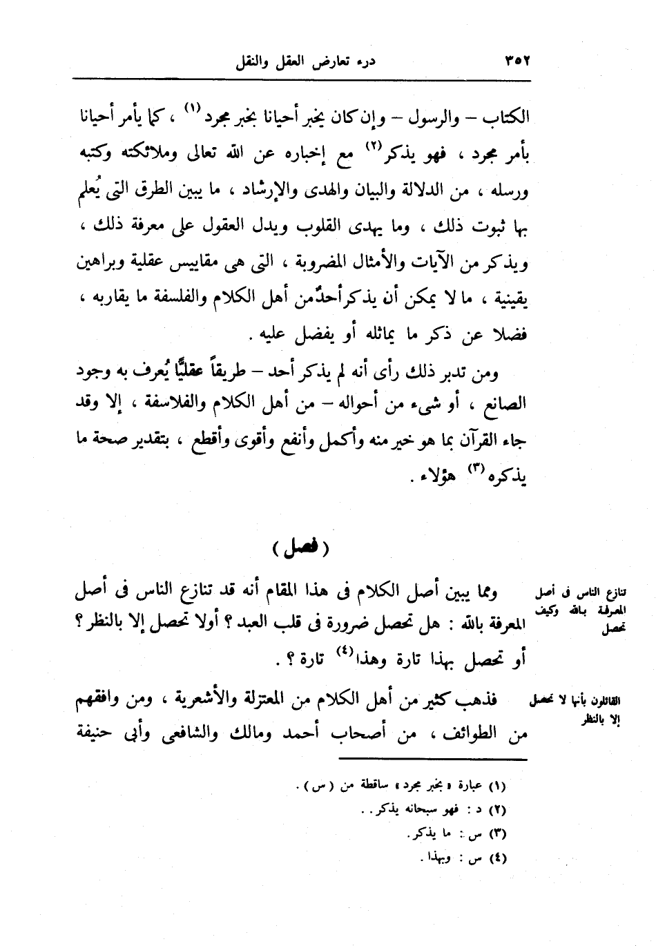 فذهب كثير من أهل الكلام من المعتزلة والأشعرية، ومن وافقهم من الطوائف، من أصحاب أحمد ومالك والشافعي وأبي حنيفة