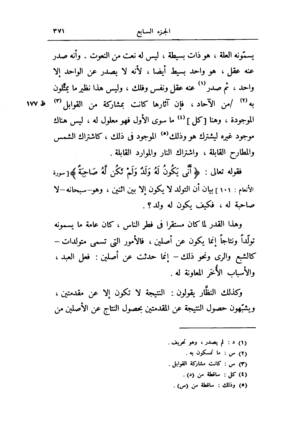 وكذلك النظار يقولون: النتيجة لا تكون إلا عن مقدمتين ويشبهون حصول النتيجة عن المقدمتين بحصول النتاج عن الأصلين من