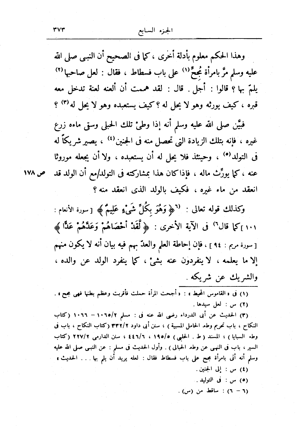 فبين صلى الله عليه وسلم أنه إذا وطىء تلك الحبلى وسقى ماءه زرع غيره، فإنه بتلك الزيادة التي تحصل منه في الجنين، يصير شريكاً له في التولد، وحينئذ فلا يحل له أن يستعبده، ولا أن يجعله موروثاً عنه، كما يورث ماله، فإذا كان هذا بمشاركته في التولد مع أن الولد قد انعقد من ماء غيره، فكيف بالولد الذي انعقد منه؟
